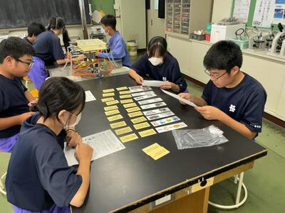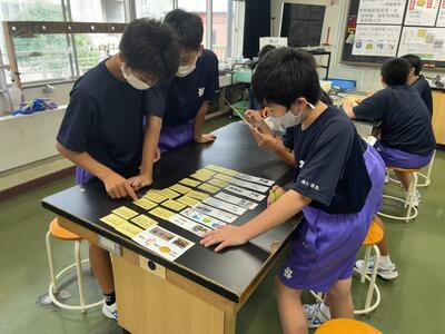 放射線出前授業の2日目は、「放射線について考えよう」という目標で、放射線・放射線物質・放射能とはどういうものか、放射線副読本やカードを使って情報整理をしていました。