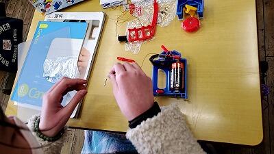 これまでの学習を生かして、部品を組み立て自力で取り組みました。