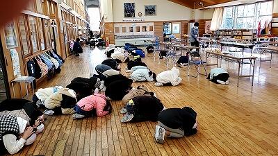 数分間はそのままの姿勢保持。解除の校内放送が流れてきてまた元の活動に戻ります。