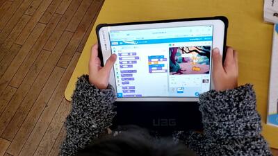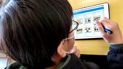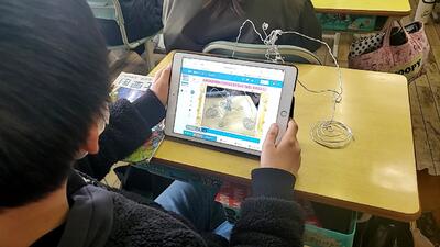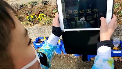 タブレットには、自分で見つけた学校自慢の場面の写真がたくさん。