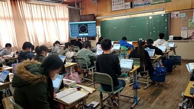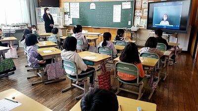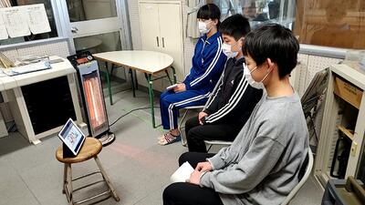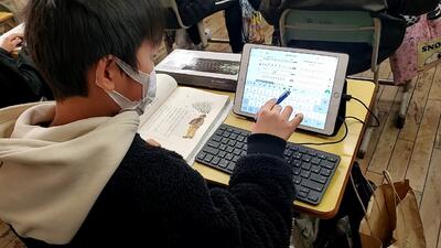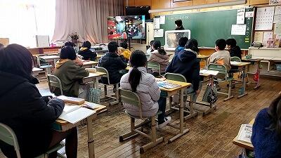 学級と、隣の特別教室。二つのグループに分かれての分散学習。