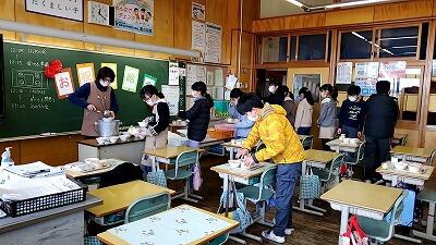 分散給食は、令和2年度も行っており、子ども達は手際よく準備や片付けができるようになりました。