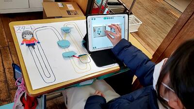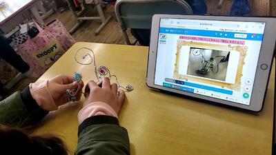 自分の作品を撮影し、アプリで共有しながらそれぞれの作品に感想を書き込みます。