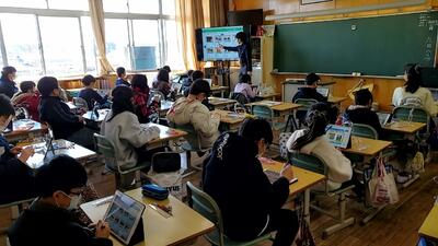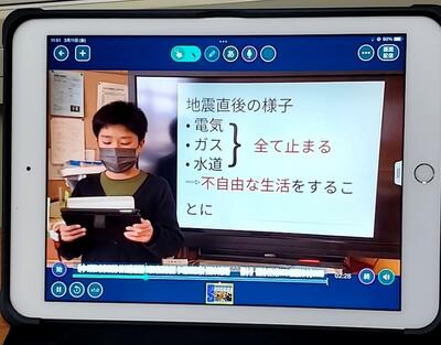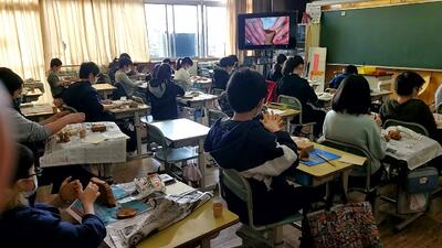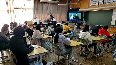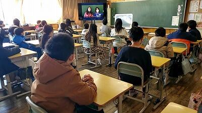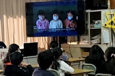 代表者が放送室で概要をアナウンス、続きはロイロノートにまとめたものを各学級同時進行で視聴しました。