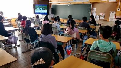 開会のあいさつ、校長の話の後は、各学年のメッセージ動画を視聴します。