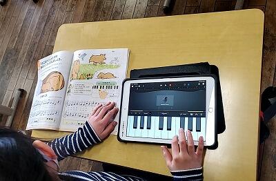 代わりにタブレットPCのアプリを使って演奏に挑戦です。