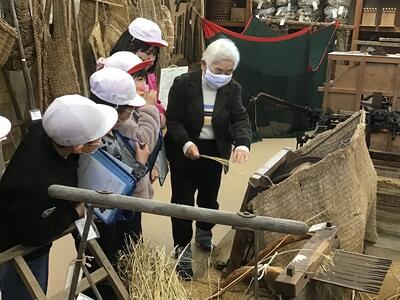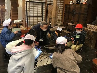 昔の道具について、指導員の方々からたくさんお話を聞いて、実際に触ってみたり、動かしてみたり。