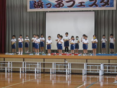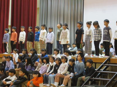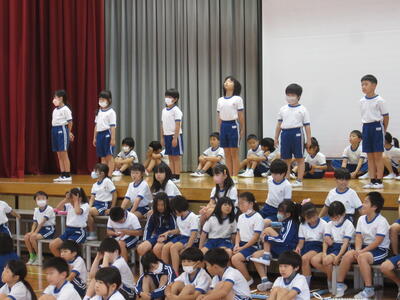 2年生は、練習の時より大きな声で発表することができました。昨年よりもぐっと成長した感じです。お父さんやお母さんの姿を見つけ、手を振っている子も多かったように思います。