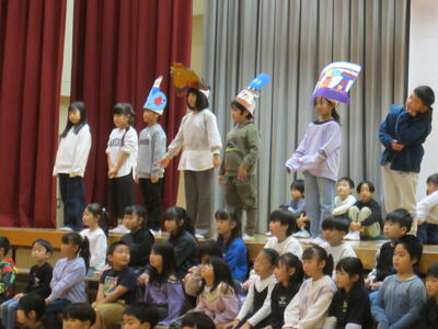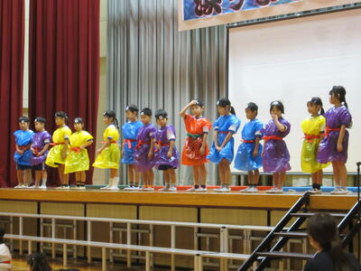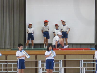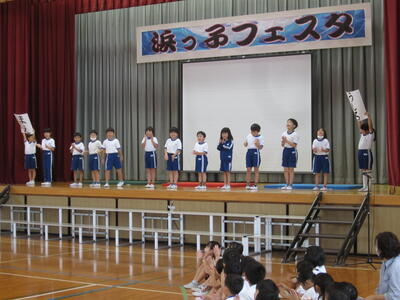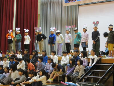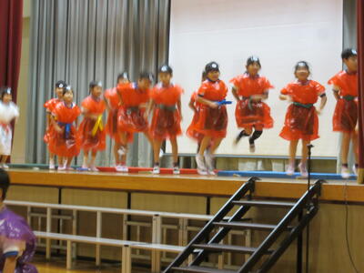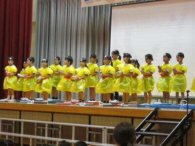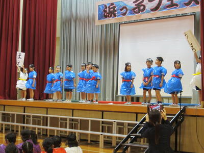 国語、算数、体育、音楽と1年生で学習した内容を発表しました。緊張しながらも大きな声で発表することができました。忍者になりきっての踊りもかわいらしかったです。