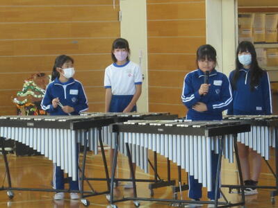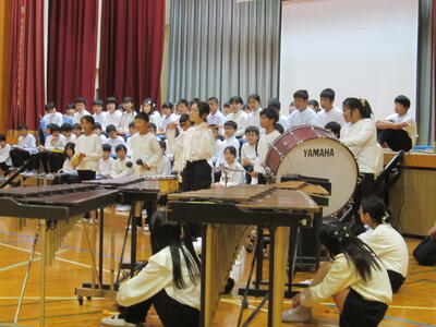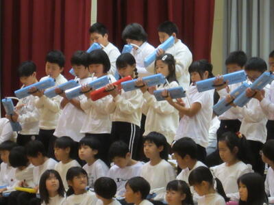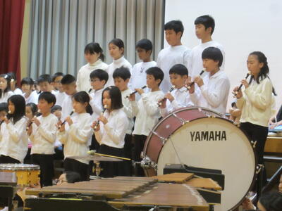 5年生は音楽祭でも演奏した「新時代」の合奏です。楽器のパートのごとの紹介も入れ、充実した内容になりました。みんなで演奏するこの曲もこれで最後です。