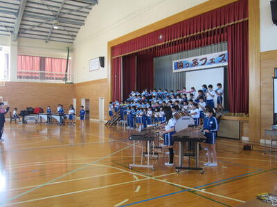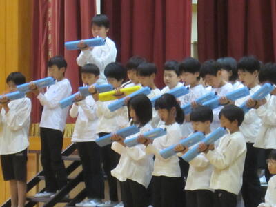 5年生は「新時代」の合奏です。はじめに木琴、バスキーボード、打楽器、リコーダー、鍵盤ハーモニカ、鉄琴、ピアノの楽器紹介もあります。壮行会、相新音楽祭と大人数の前で演奏していますが、浜っ子フェスタ本番ではさらによい演奏をしてくれると思います。