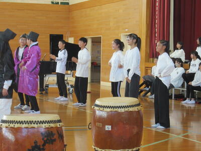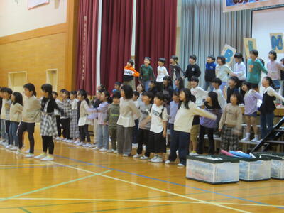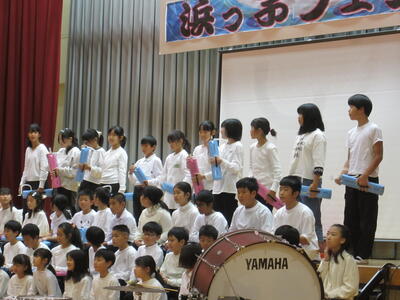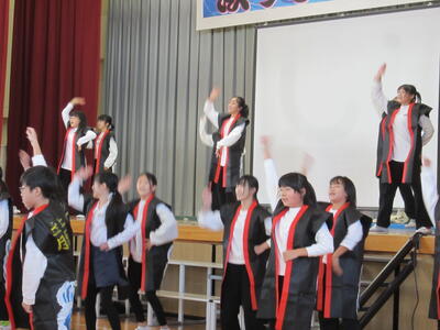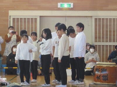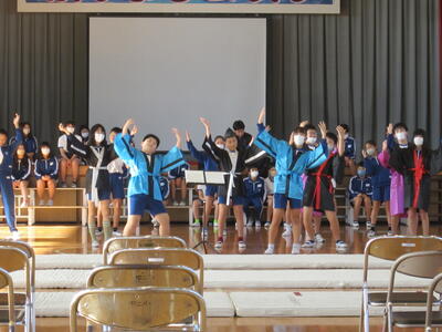 「浜っ子フェスタ」の締めにふさわしく、6年生らしい演目でした。社会で学習した「大化の改新」の劇、合唱、旭川南中学で始まった「南中ソーラン」に太鼓も加え、迫力のある終わりになりました。