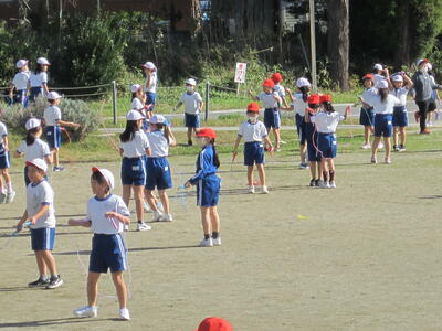 1年生は「なかにん・にんじゃがっこう」です。忍者になり、国語、算数、音楽、体育の修行を行い、表現豊かに発表をしていきます。