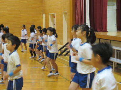 4年生は「リズムに合わせてLet’s Go!!」です。「楽しいマーチ」の手拍子と鍵盤の演奏に合わせてマット運動やなわとびをします。また、「Burning Friday Night」に合わせたダンスを披露します。