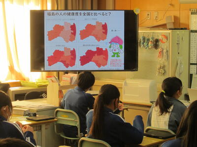 本日、全国健康保険協会福島支部から3名の方においでいただき、健康教室を行いました。生活習慣病予防のために、食事やおやつはどのぐらい食べればいいかなど教えていただきました。今後の食生活や運動、睡眠も健康でいられるように考えていかなければなりません。