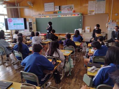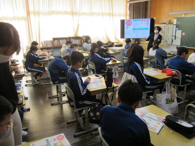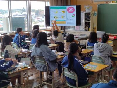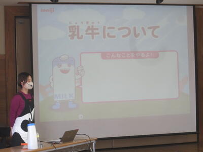 2023年11月24日 10時11分株式会社明治の方においでいただき、2年生がみるく教室を行いました。普段給食で飲んでいる牛乳について、またそれを作っている乳牛について勉強をしました。学校の近くでは乳牛を見る機会は少ないのですが、今回の授業で牛乳に関わる様々な事を知ることができました。