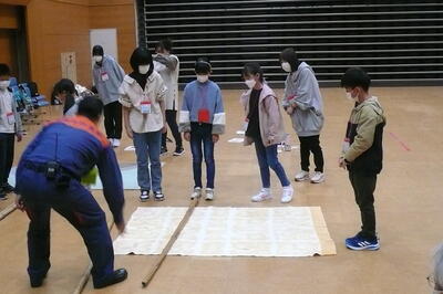 18日土曜日に、「そうまジュニアマスター2023」がはまなす館で行われました。今年の担当校が中村二小と磯部小ということで、学校では参加者を募ったところ、定員を上回る参加の声がありました。講座では、心肺蘇生、応急担架訓練、消火訓練、地震体験など様々な経験を通して、防災のための知識や技能を身につけました。また、この講座には相馬消防署をはじめ様々な団体、高校生のボランティアの皆さんのご協力がありました。