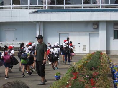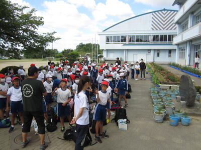 本日、5年生が宿泊活動を行うため、いわき海浜自然の家へむけて出発しました。梅雨ではありますが、天気も良く、充実した活動ができることを期待しています。
