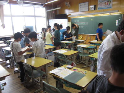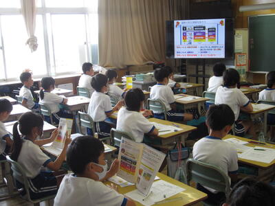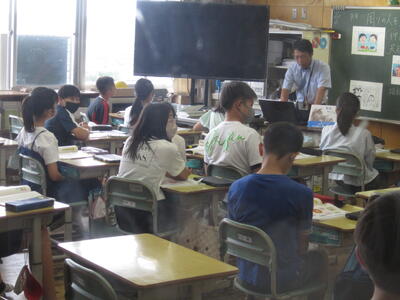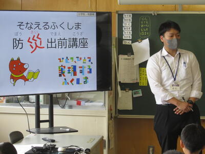 県の危機管理部の方を迎え、防災出前講座を行いました。「災害が起こったときに、何をすればよいのか」をこれまでの学習をもとに考えました。