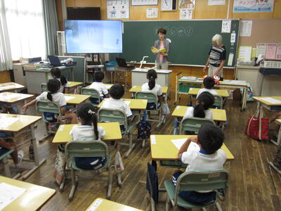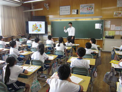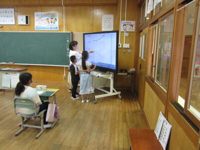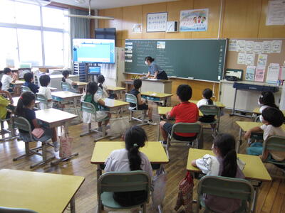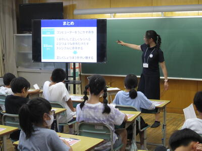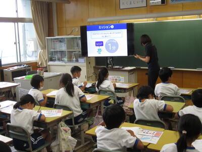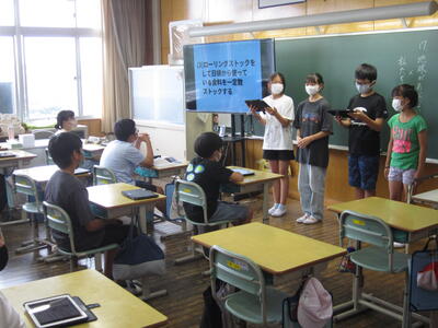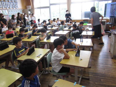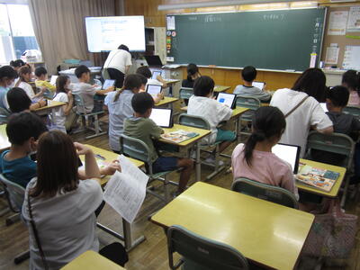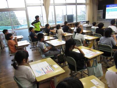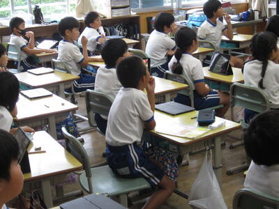 放課後NPOアフタースクールの3名の皆さんにおいでいただき、4年生がプログラミングについて勉強をしました。身の回りにあるプログラミングについて考え、その後、タブレットを使っていろいろ操作もしました。外部の先生に来ていただき、日頃の授業とは違った雰囲気で楽しく学ぶことができました。