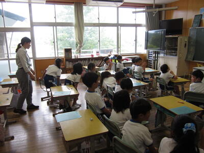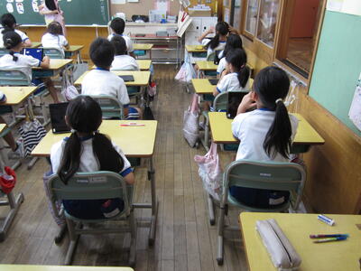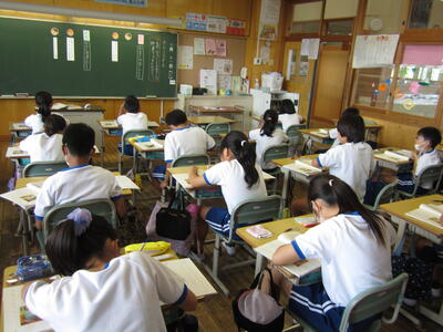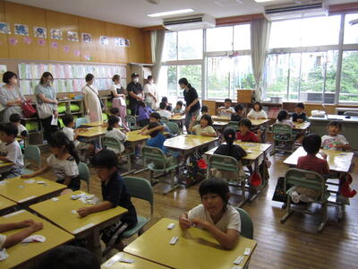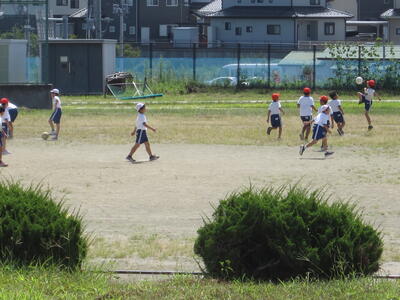 ここのところ暑い日が続き、外で遊ぶことができません。暑さ指数をみると31を超え、危険な状態が続いていました。今日は湿度も少なく、厚さ指数も下がったので、2校時の休み時間に外で遊ぶ人もいました。