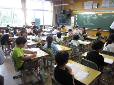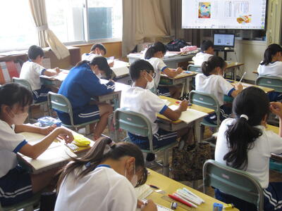 5年3組で国語の研究授業を行いました。「カレーライス」というお話をもとに、登場人物の行動や気持ちの変化を読み取っていきました。友達と意見を交換しながら、書かれている文章から様々な事を読み取ることができました。