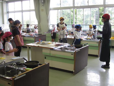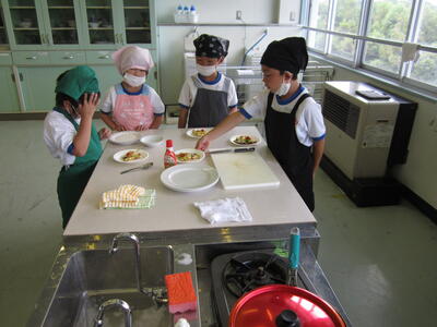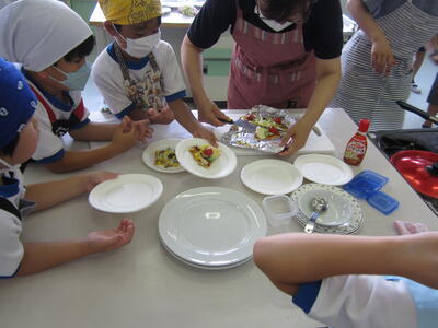 2年生は、これまでミニトマトを育ててきました。今回もJAの方に協力いただき、ミニトマト、ナスなどを使ってピザづくりに挑戦しました。