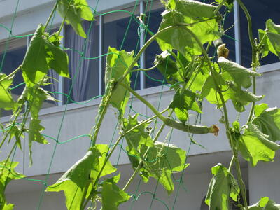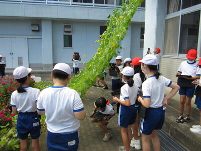 外は暑い日が続いています。1学期に植えたヘチマも数は少ないですが、夏休みの間に実をつけました。今後も、ヘチマの観察を続けていきます。
