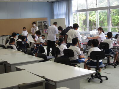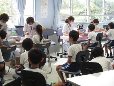 4年生は生活習慣病予防検診を行いました。大人と同じように、血圧を測ったり採血をしたりします。特に採血では、注射器で一定量の血液を採る経験が初めての子がほとんどでしたが、何とか頑張りました。