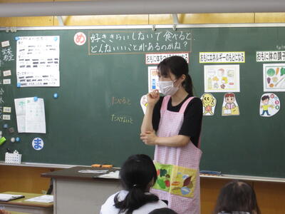 3年生は、担任、栄養教諭、養護教諭の先生方と栄養教室を行いました。授業のねらいは、好き嫌いをせずバランスよく食べることです。それぞれの栄養の働きについて考え、前に撮った給食の写真などをもとに自分たちの食生活について振り返りました。嫌いなものがあったときには、すくなくなった栄養を他の食べ物でとることも考えていけるといいですね。