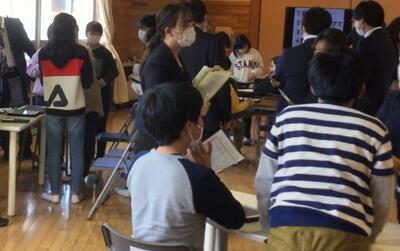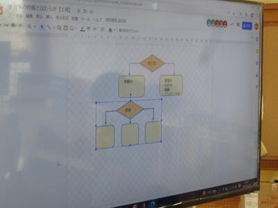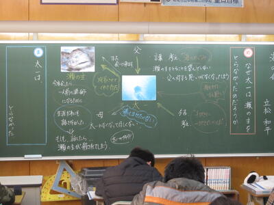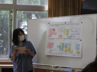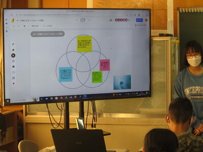 その後、いくつかのグループが発表し考えを共有しました。授業者からはいくつかの問いかけがあり、文章の根拠をもとにいろいろと考えをめぐらせていました。
