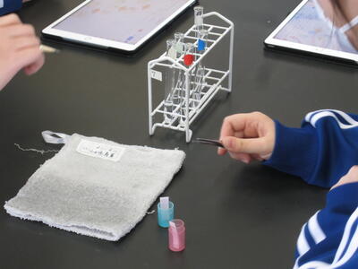 見た目、臭い、蒸発、リトマス紙などの実験を通して、それぞれの液体が何なのかを見つけ出していました。