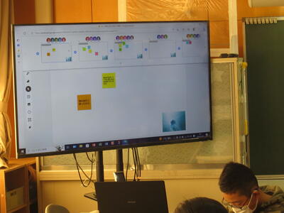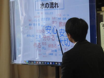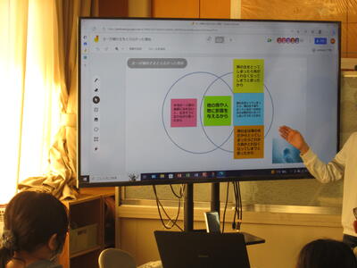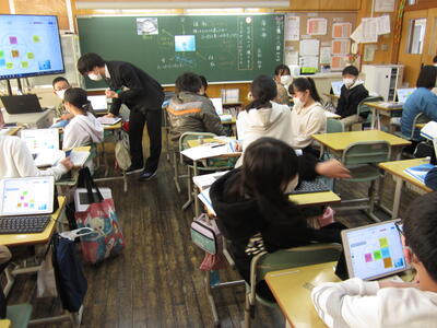授業後は、参加による話し合いを行いました。ワードクラウドやロイロノートの使い方について焦点を絞りよかったところ、改善したほうがいいところを話し合い、ICTの使い方について考えを深めました。