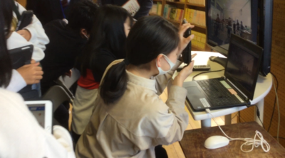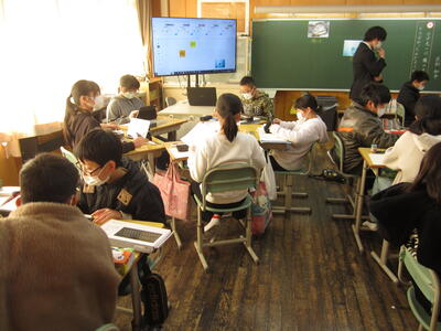 ・中二小、中二中同時開催であるが学校間移動での参観を行わずオンラインで互いの授業を視聴