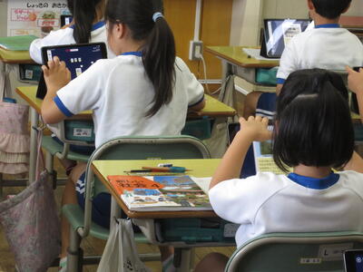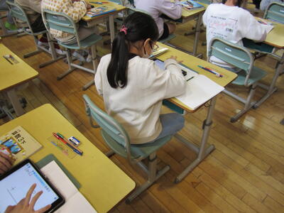 朝の活動の時間、情報担当の先生から全校放送で、「自分の使い方がどうだったか振り返りをしてみましょう」とのお話がありました。特に5,6年生は1人1台使える状況にあるので、他の人が困るような写真の撮り方や活用のしかたをしていないかなど、情報モラルの観点で再度見直しをしました。