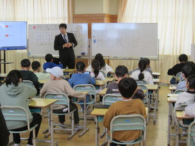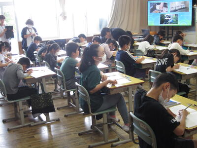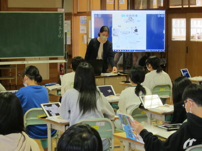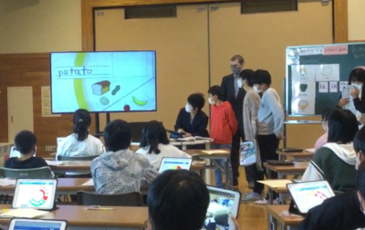 本校が、日頃から取り組んでいるICTを活用した英会話の個別練習や、遠隔交流学習を取り入れながら学習している様子について、英語教育に関わる教育関係者が参観されました。