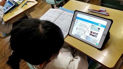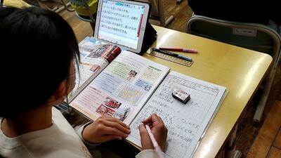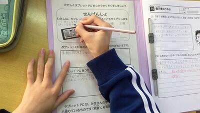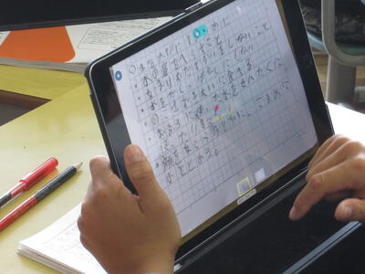 タブレットPCはスクールタクトを使ってメモ代わりに多様な考え方を書き、ノートには記録として書いてまとめます。ノート作りも学力の定着には大切であり、その併用はそれぞれ機器やアプリの特性を踏まえての効果的な活用の仕方となっています。