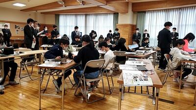 情報が与える影響について各自課題を明確にし、「インターネットや教科書、資料集」「新聞記者の方に直接質問」「動画資料視聴」など自分が調べたい調査方法をそれぞれ選択して調査活動を行いました。