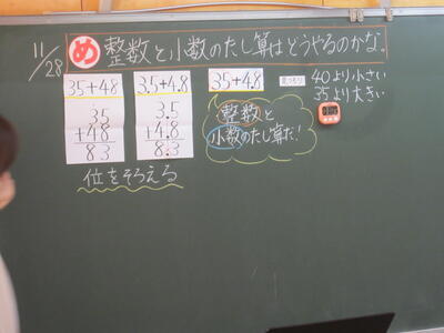 ②4年1組・2組 算数「小数のしくみとたし算、ひき算」