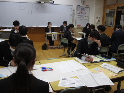 まず、一人一人が自分の考えを書き、グループでその共通点を見つけました。各グループともリーダーを中心に話し合いを深めていました。