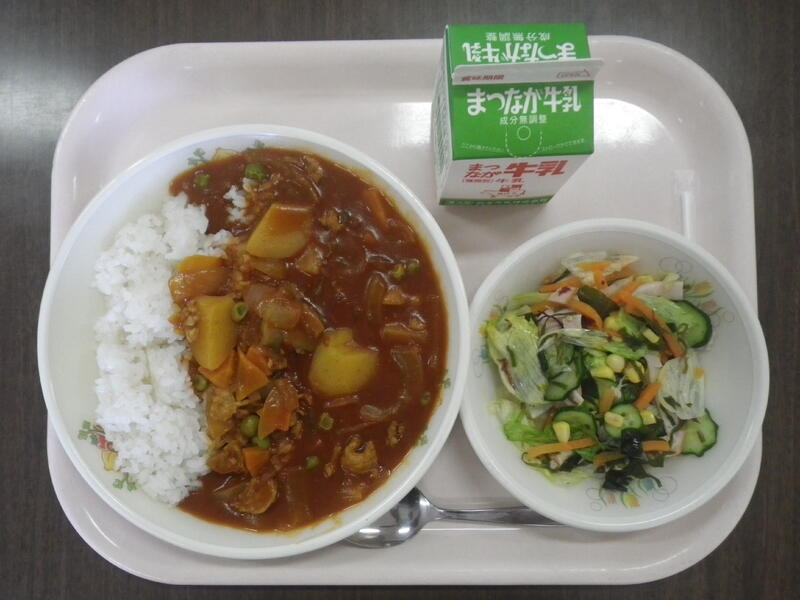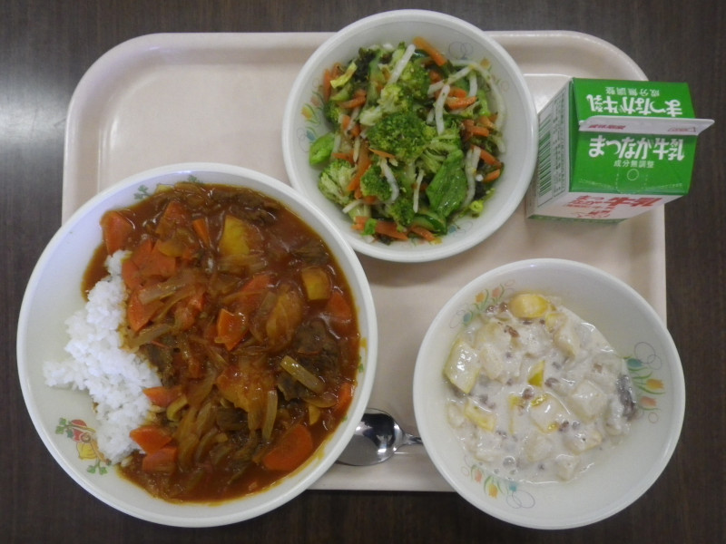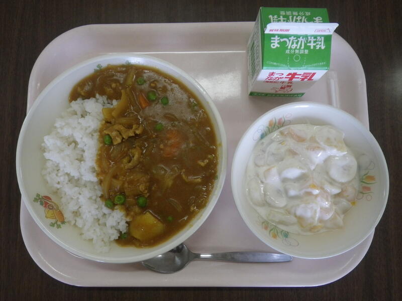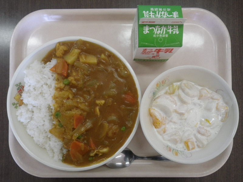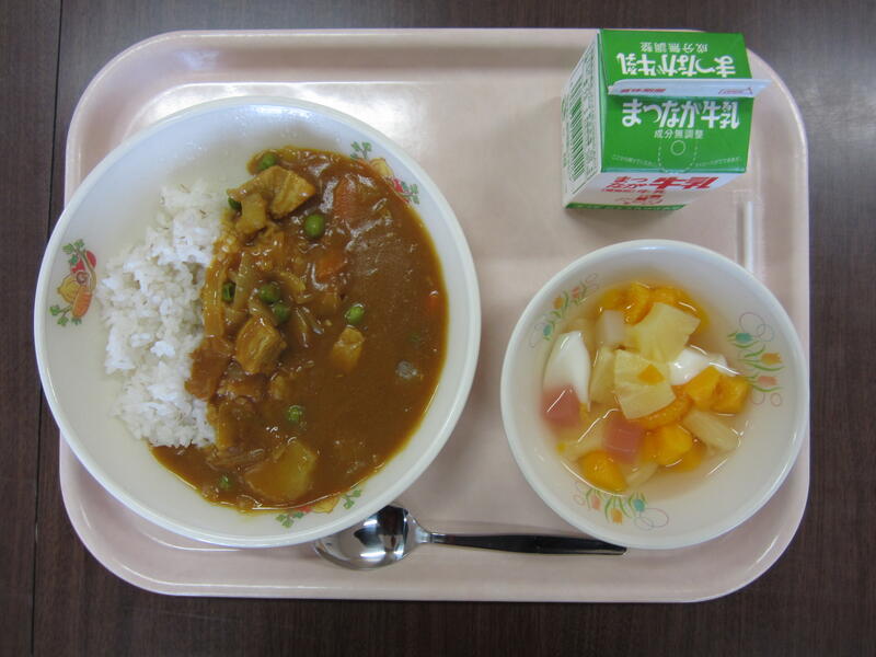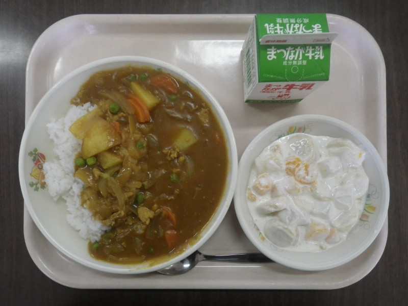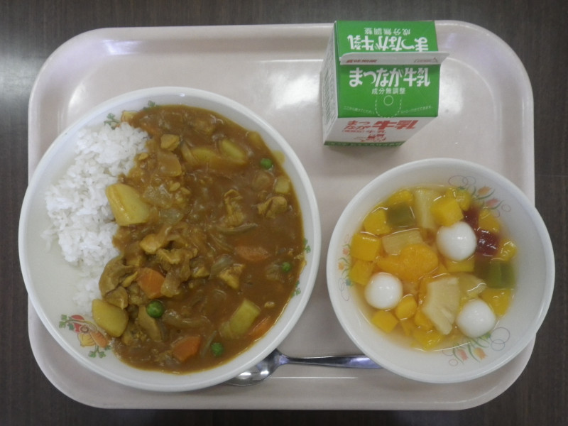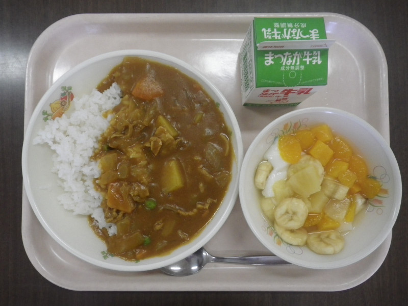 4/7 ポークカレー 牛乳 フルーツポンチ