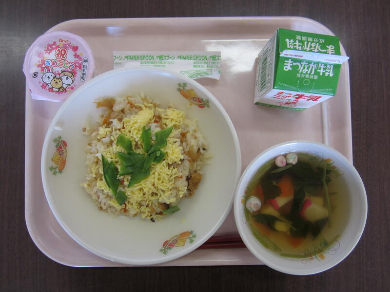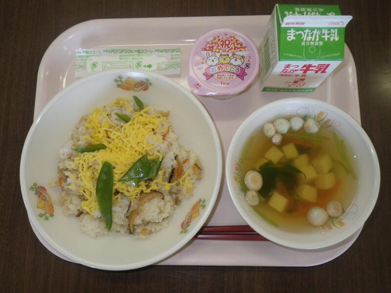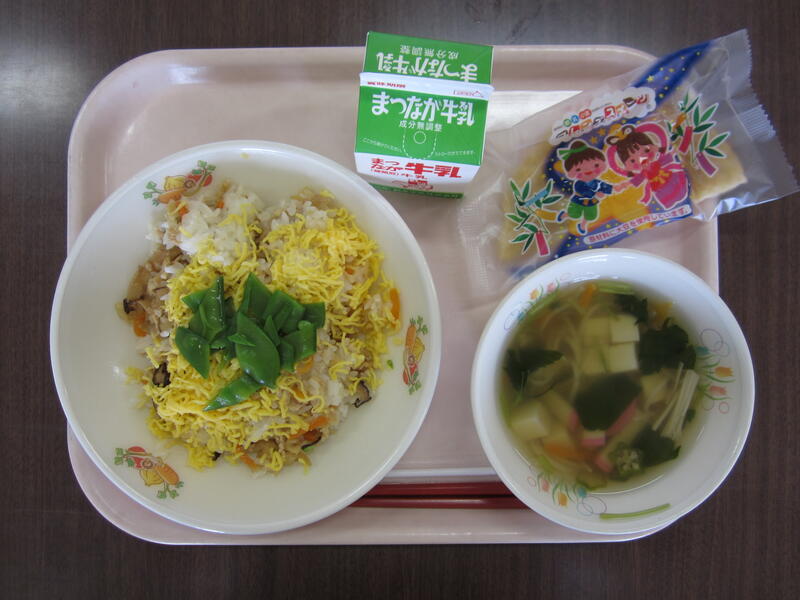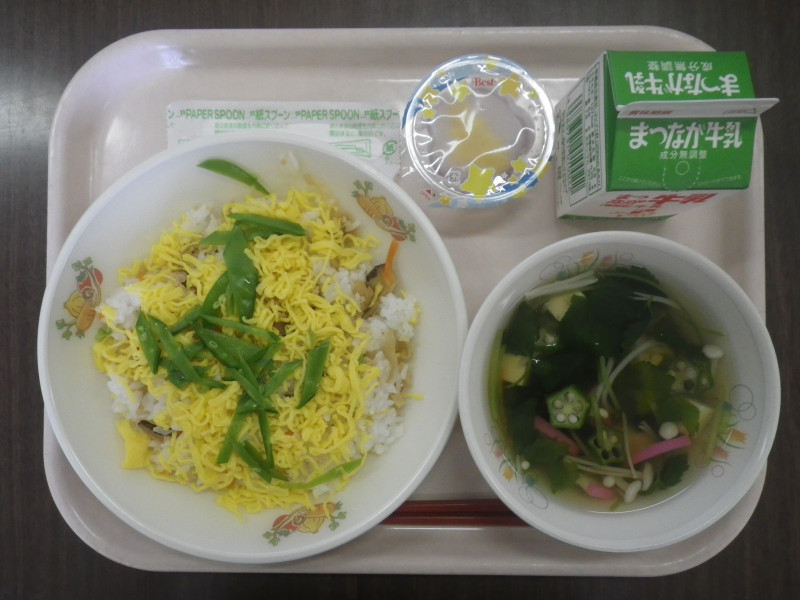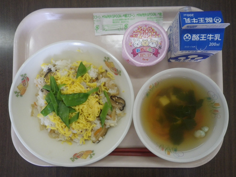 ちらしずし 牛乳 すまし汁 お祝いゼリー