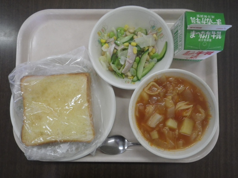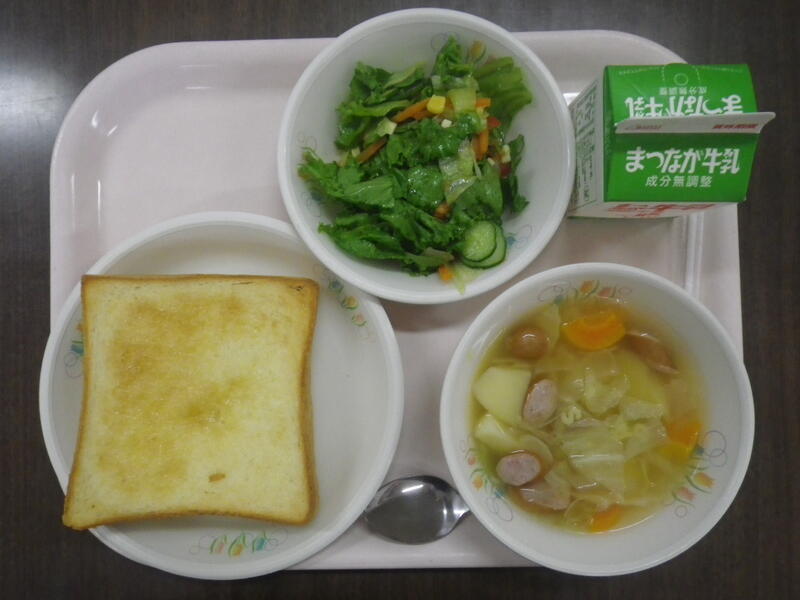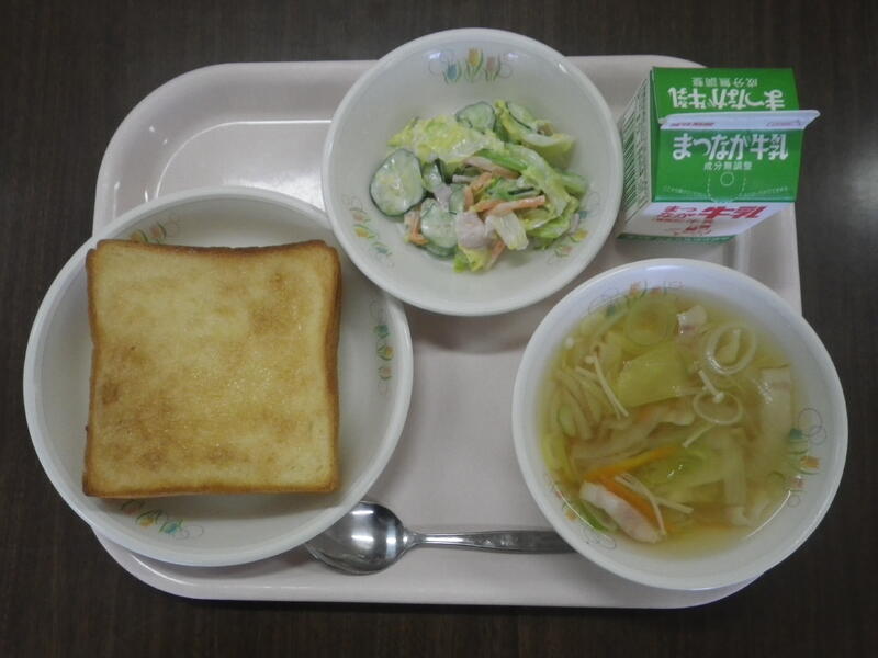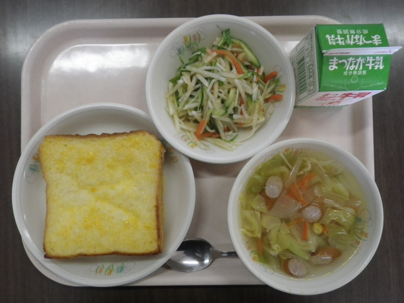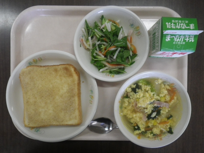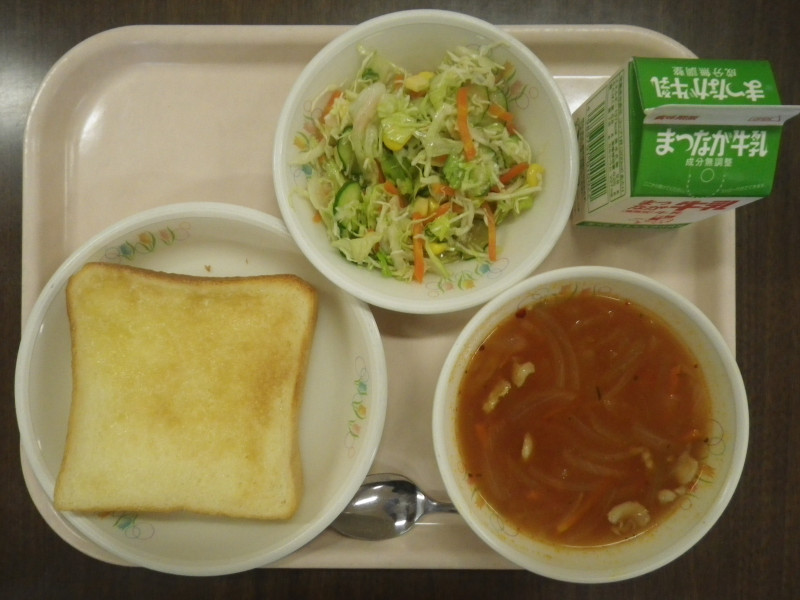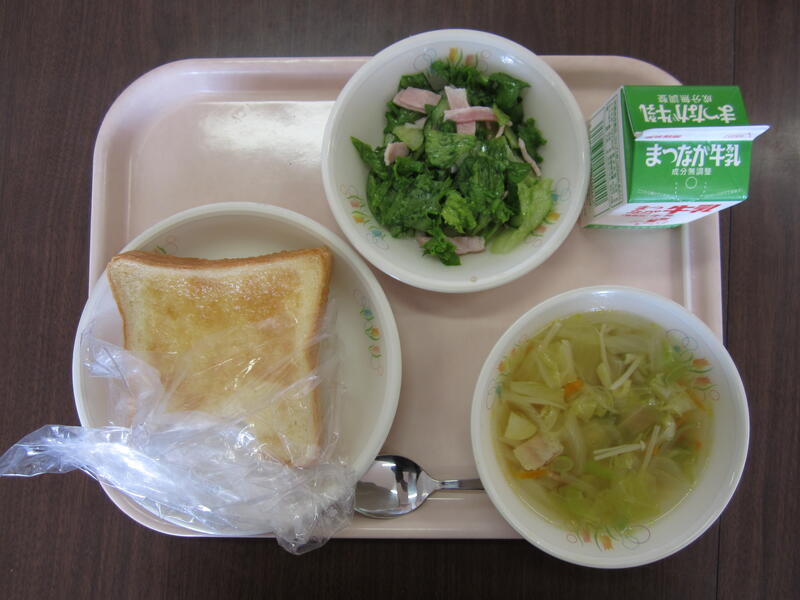4/11 シュガートースト 牛乳 ハムマリネサラダ オニオンスープ