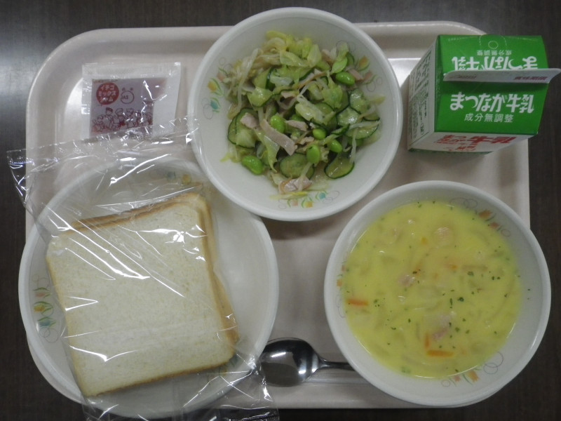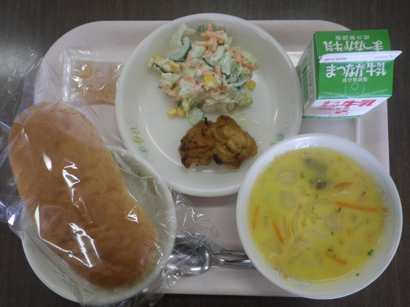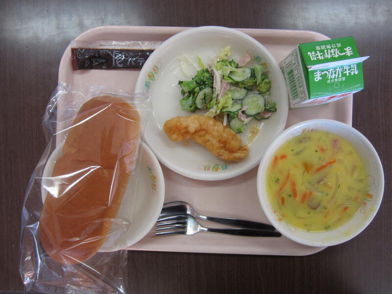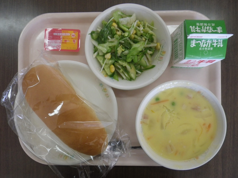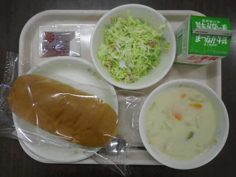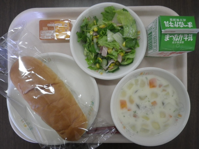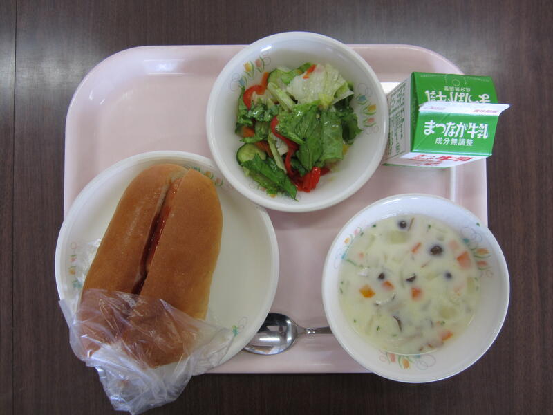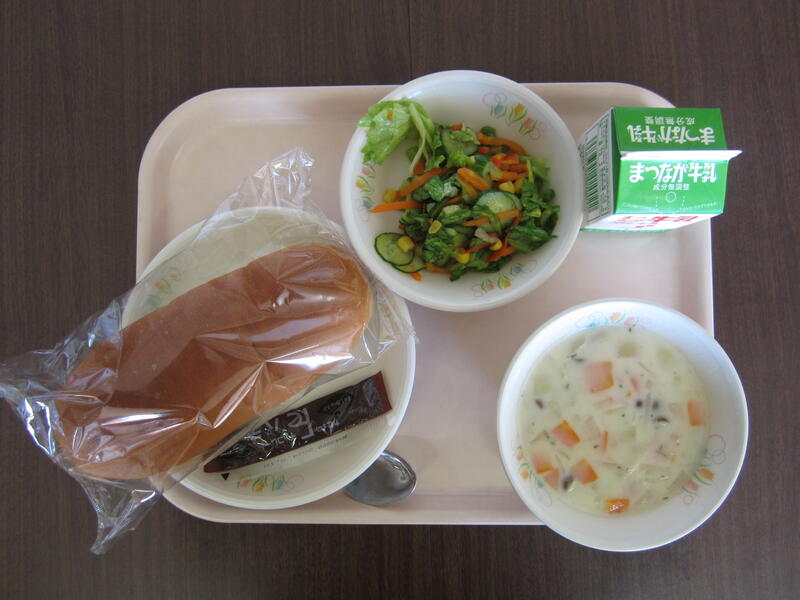 4/18 ウインナードックパン 牛乳 グリーンサラダ クラムチャウダー