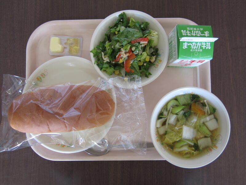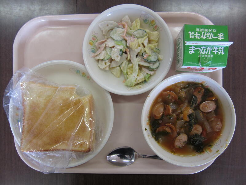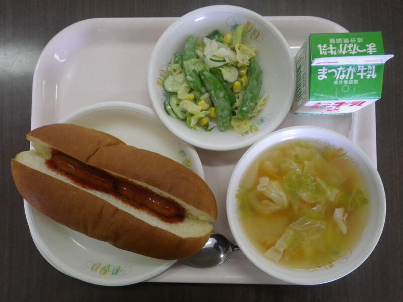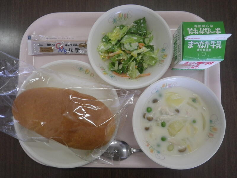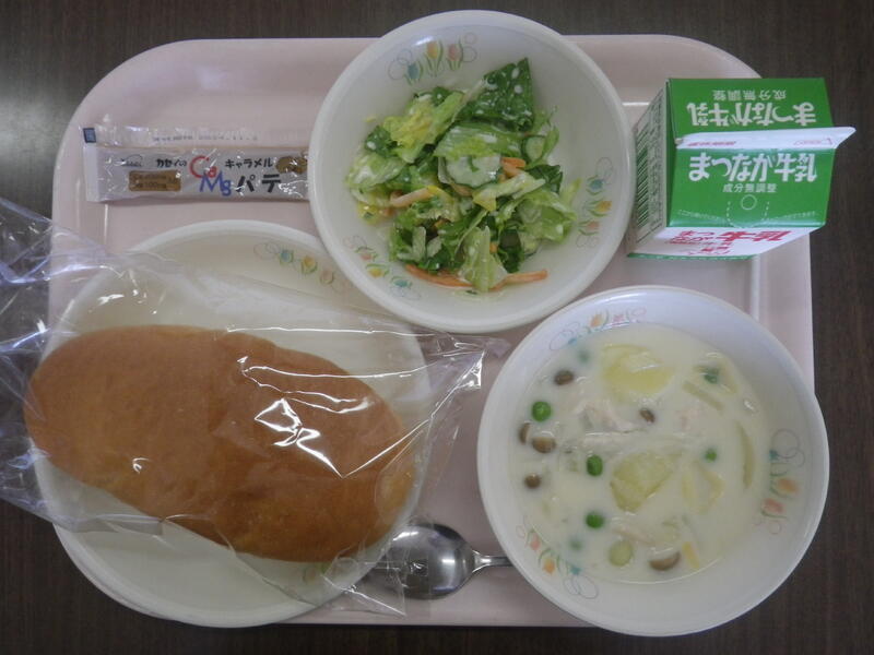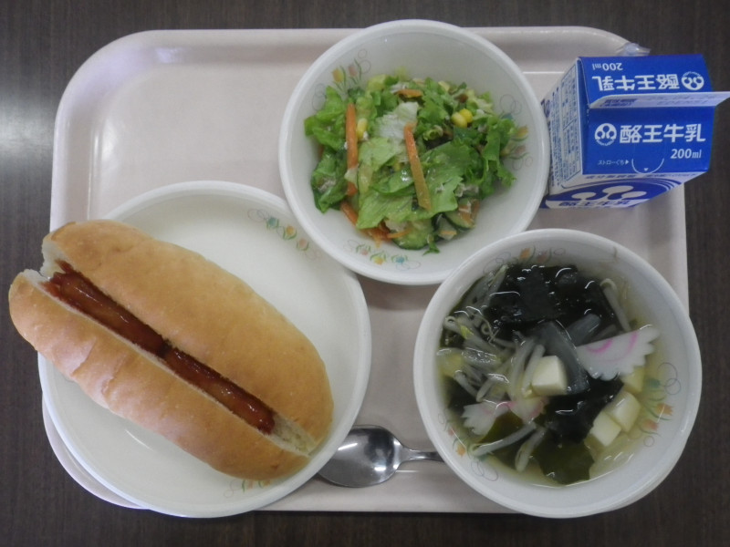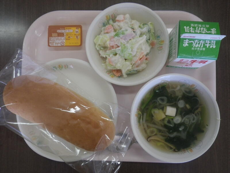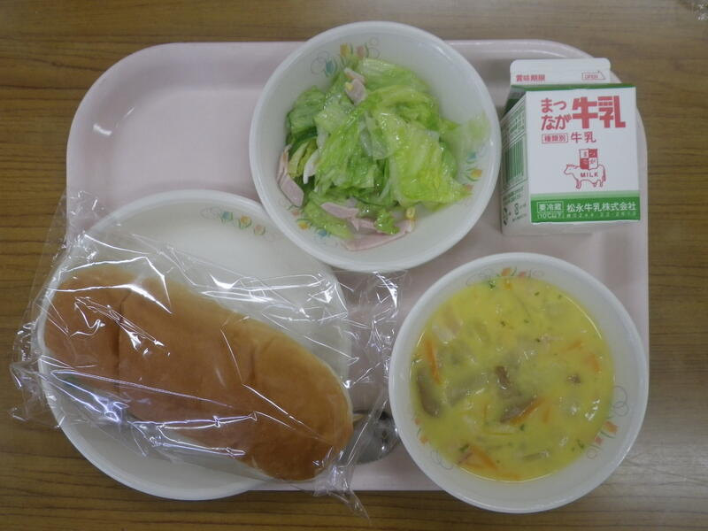 4/18 ウインナードックパン 牛乳 グリーンサラダ クラムチャウダー