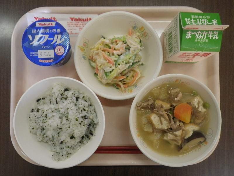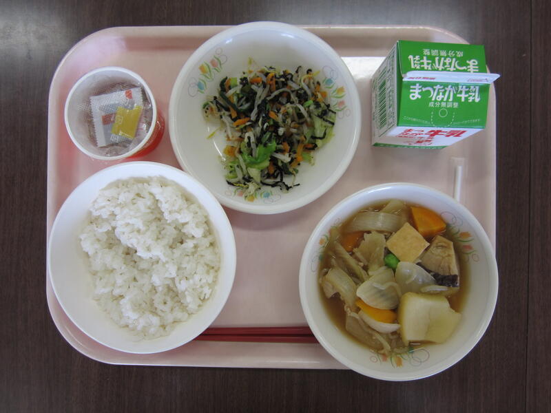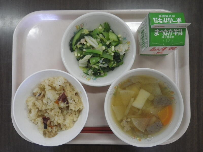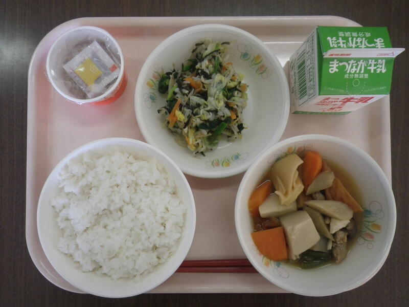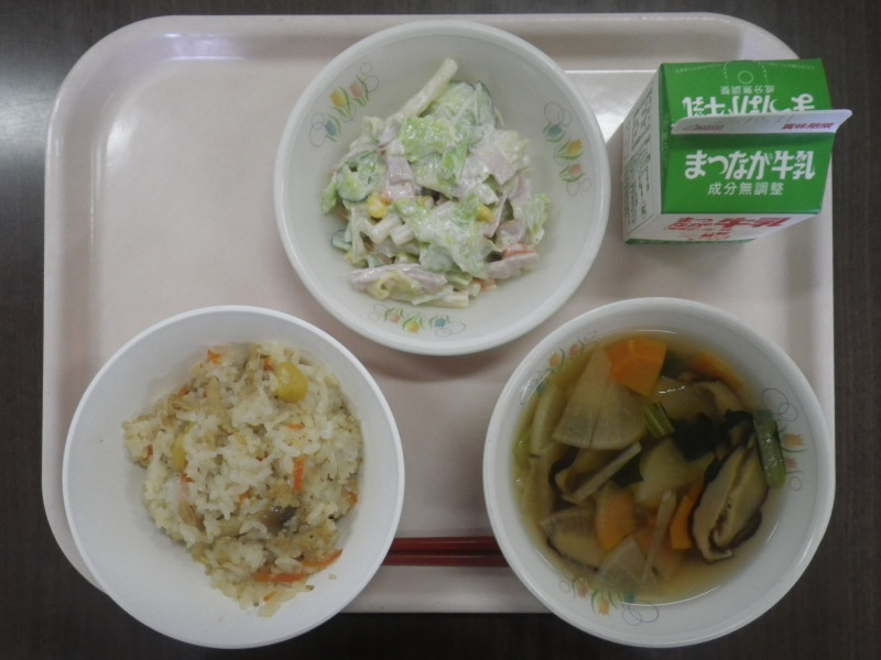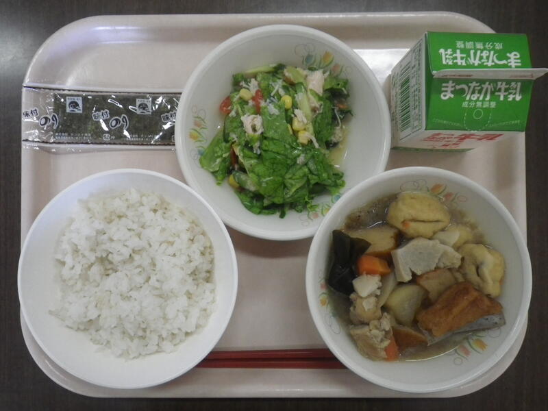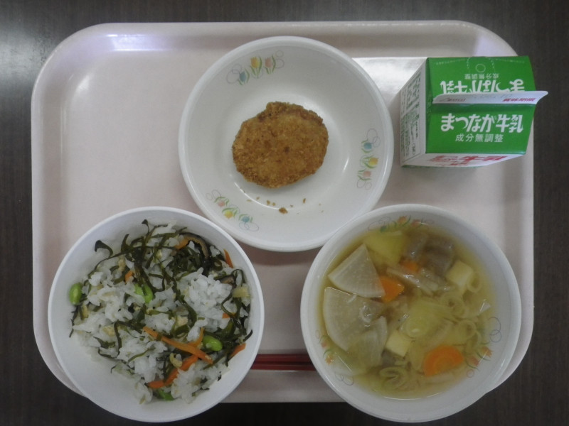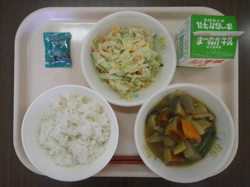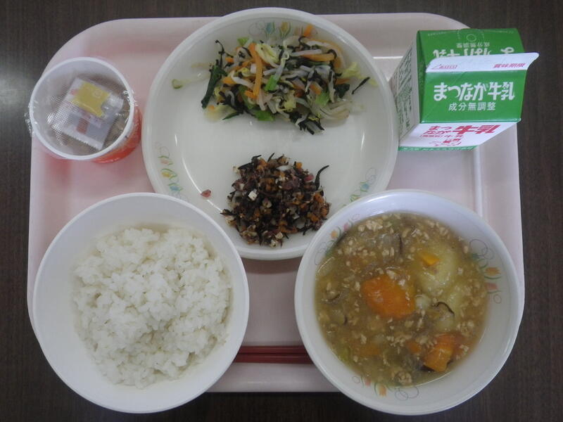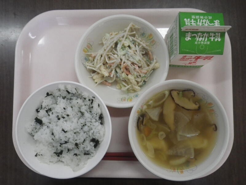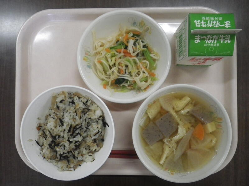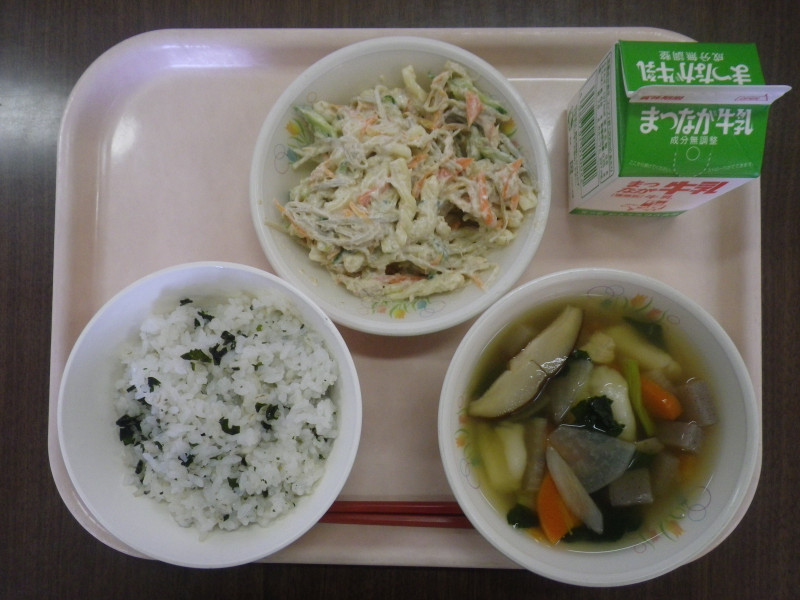 11/10 わかめごはん 牛乳 ごぼうサラダ すいとん汁
