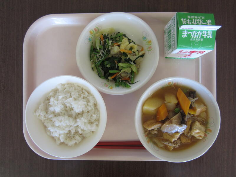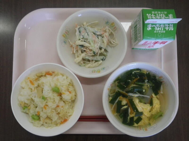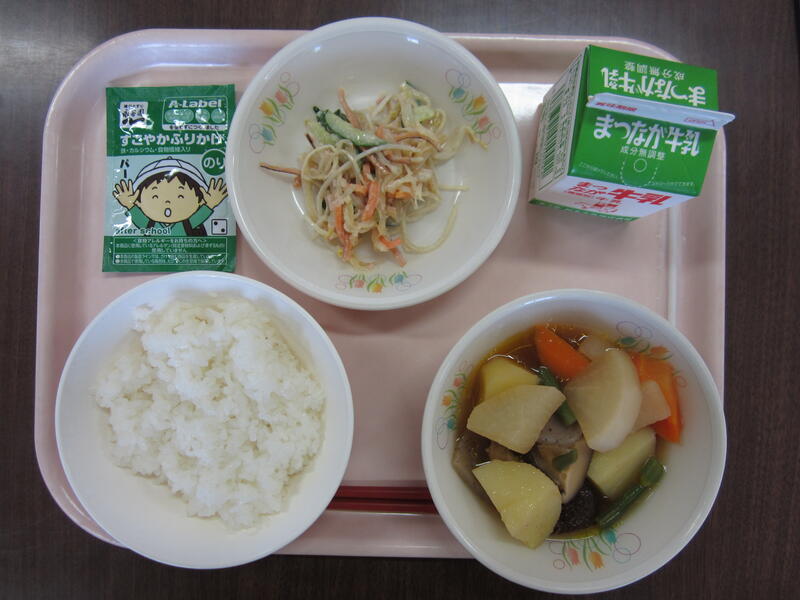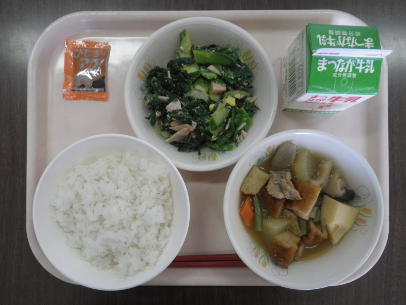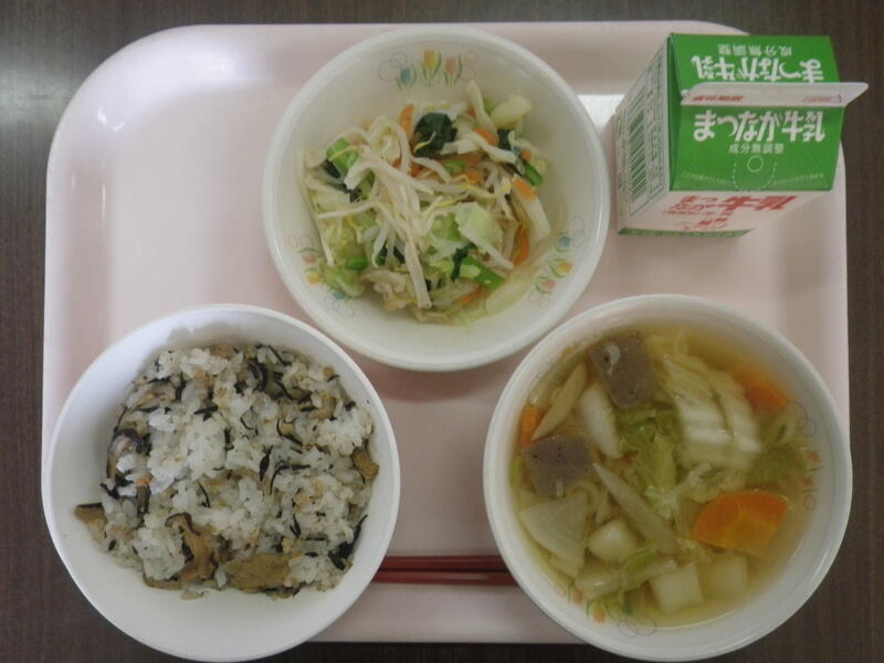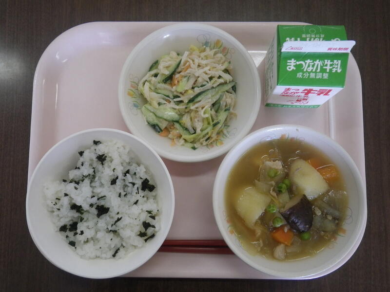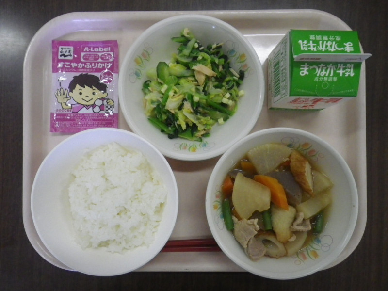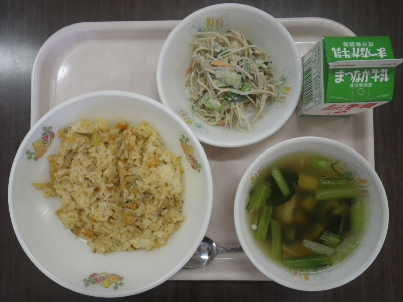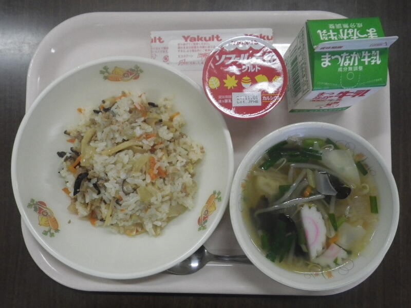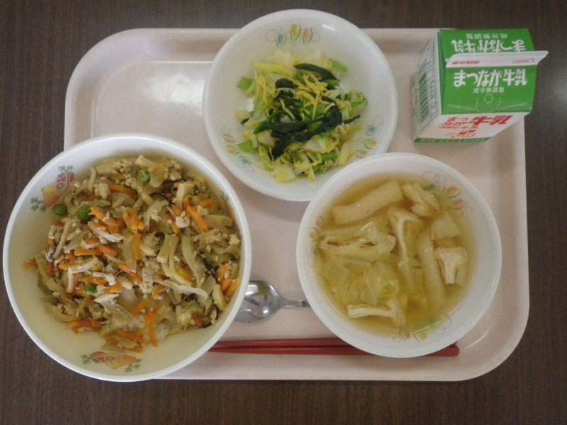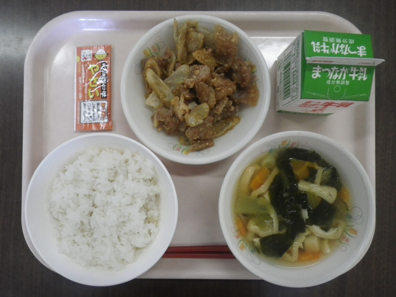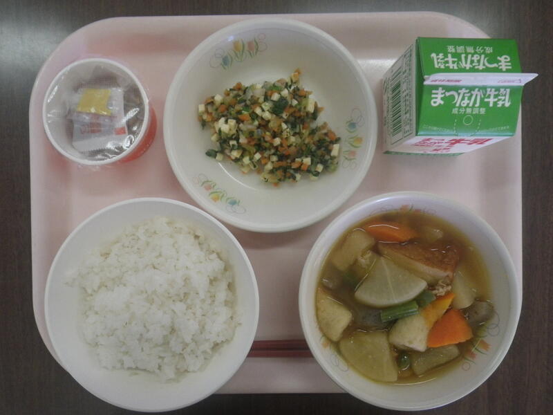 11/10 わかめごはん 牛乳 ごぼうサラダ すいとん汁