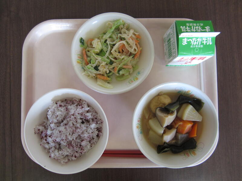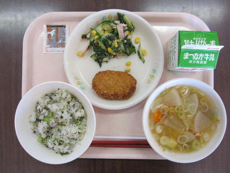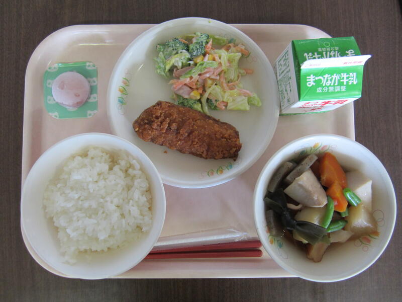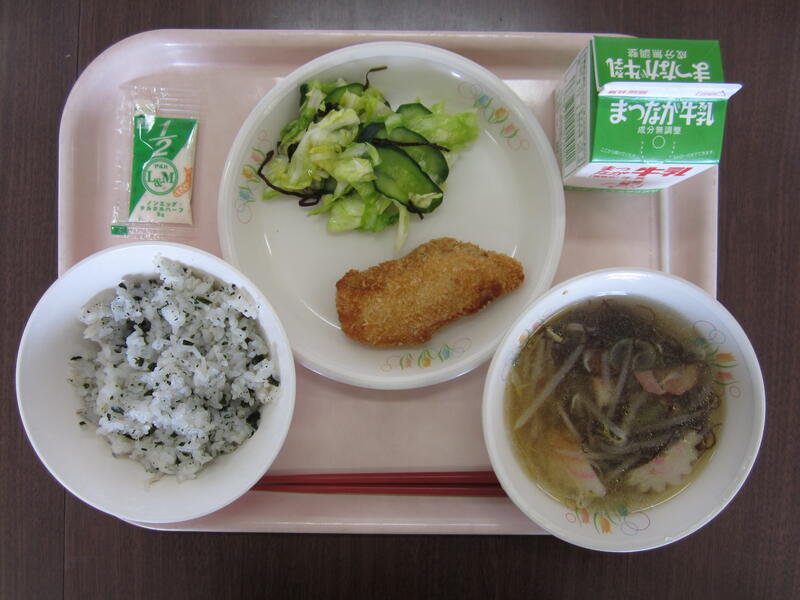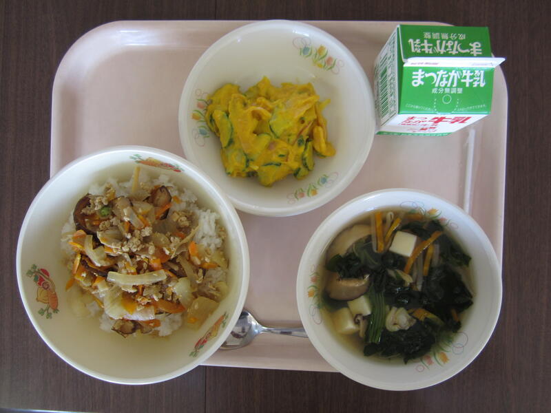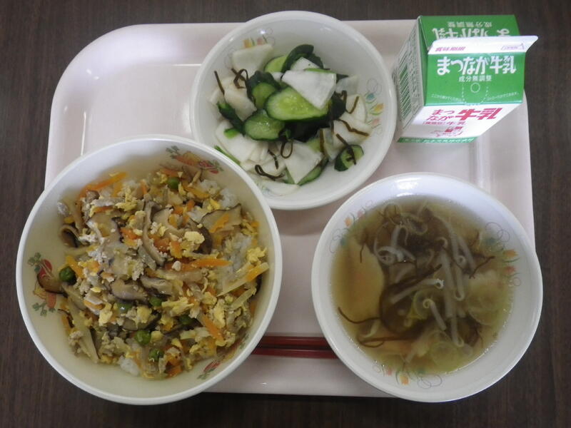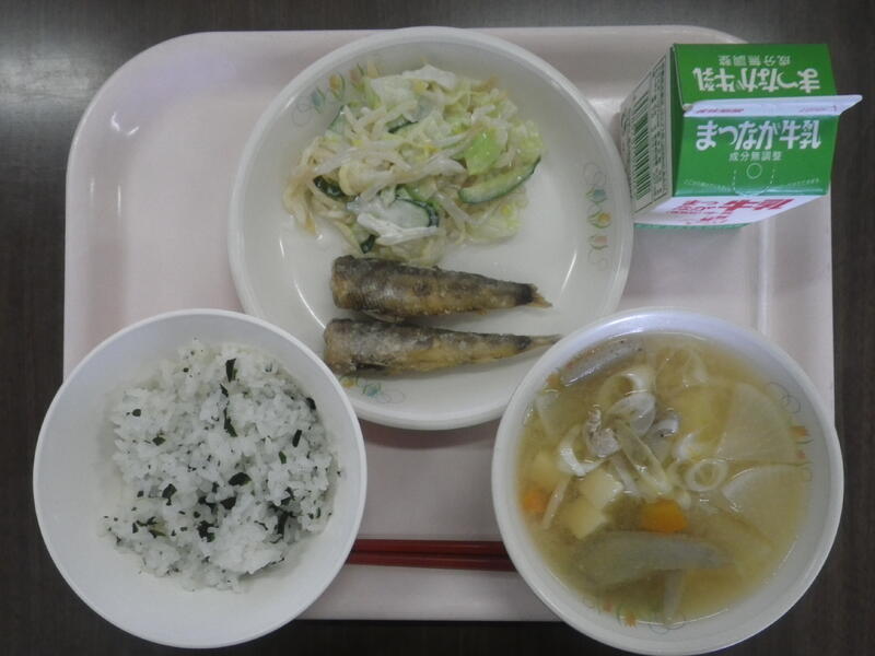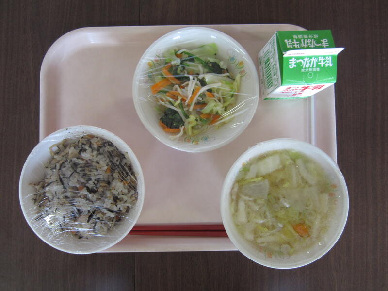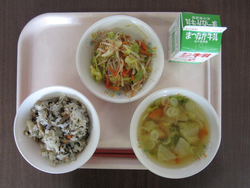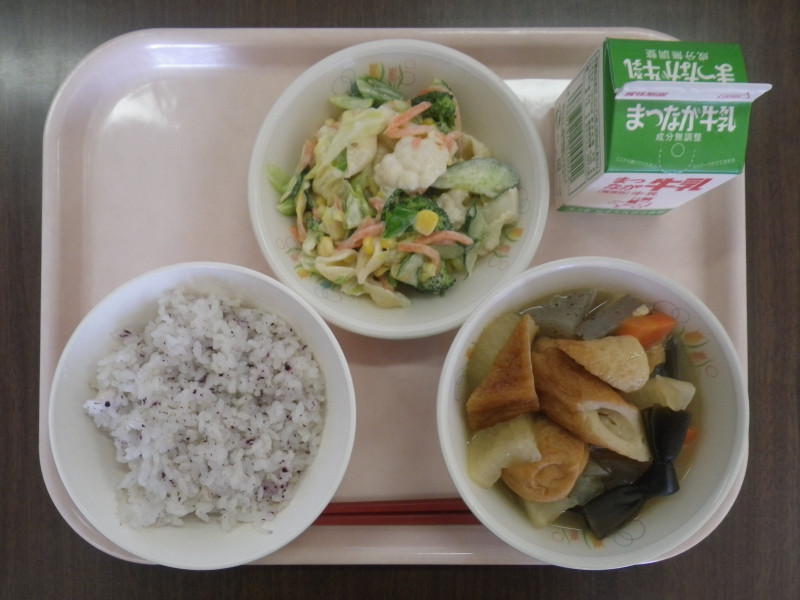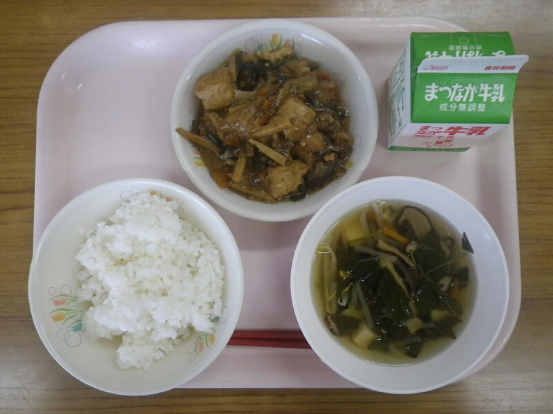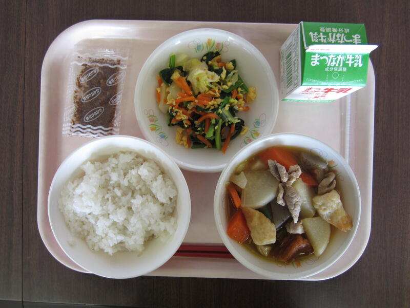 11/10 わかめごはん 牛乳 ごぼうサラダ すいとん汁