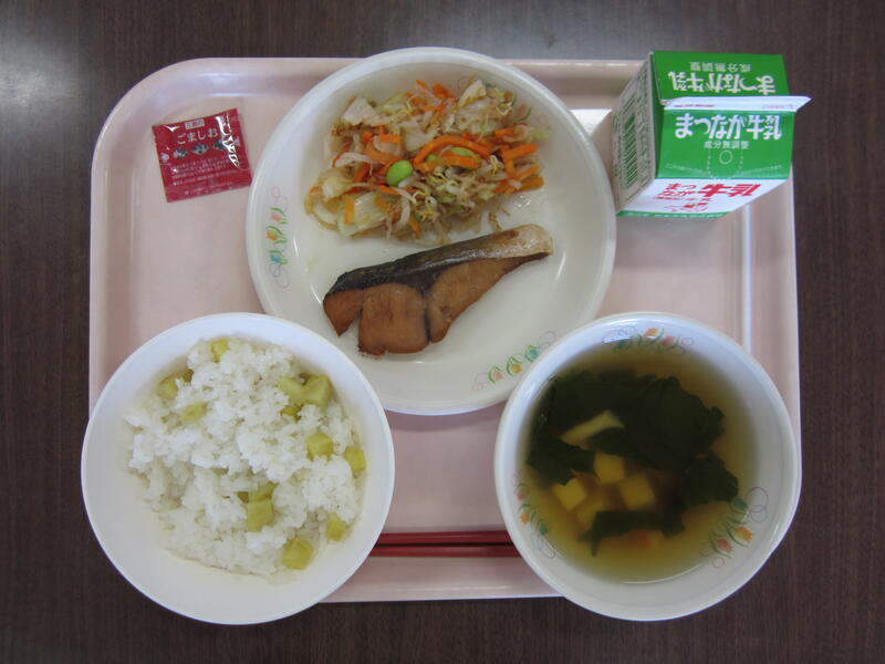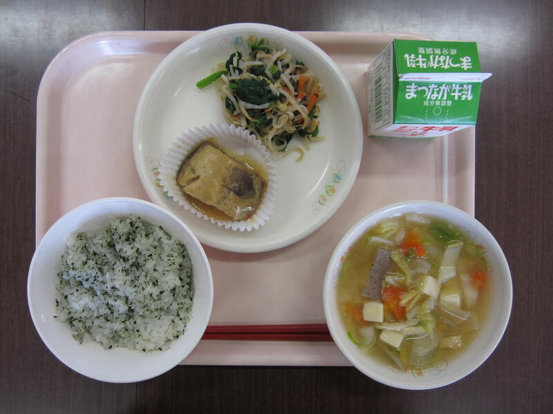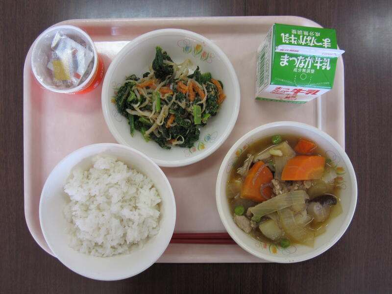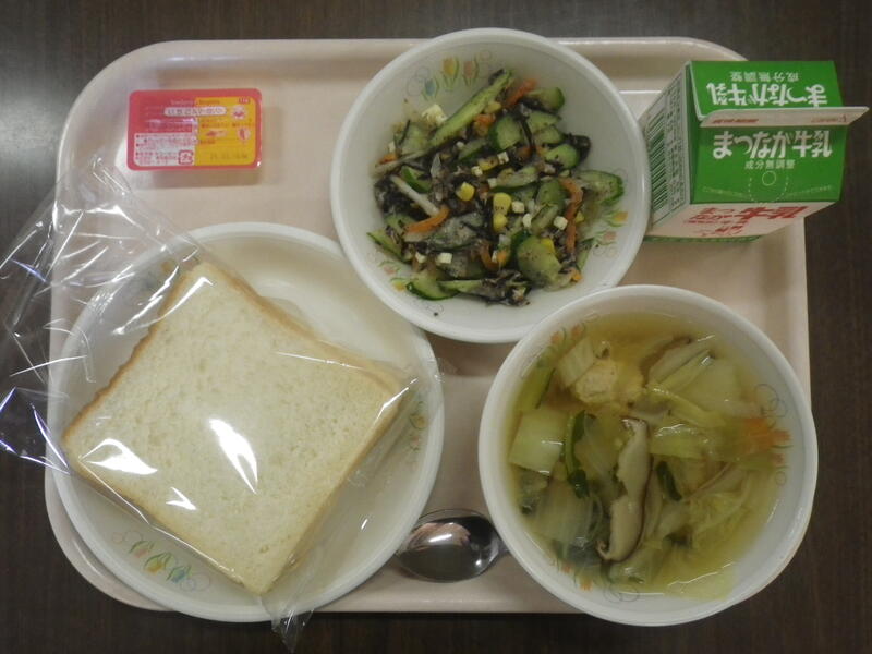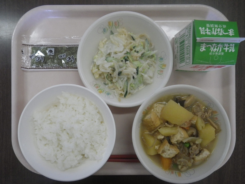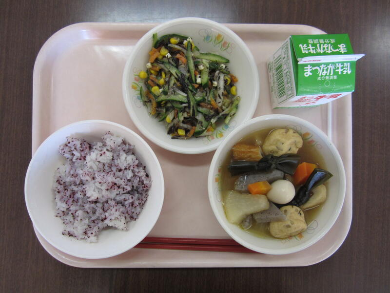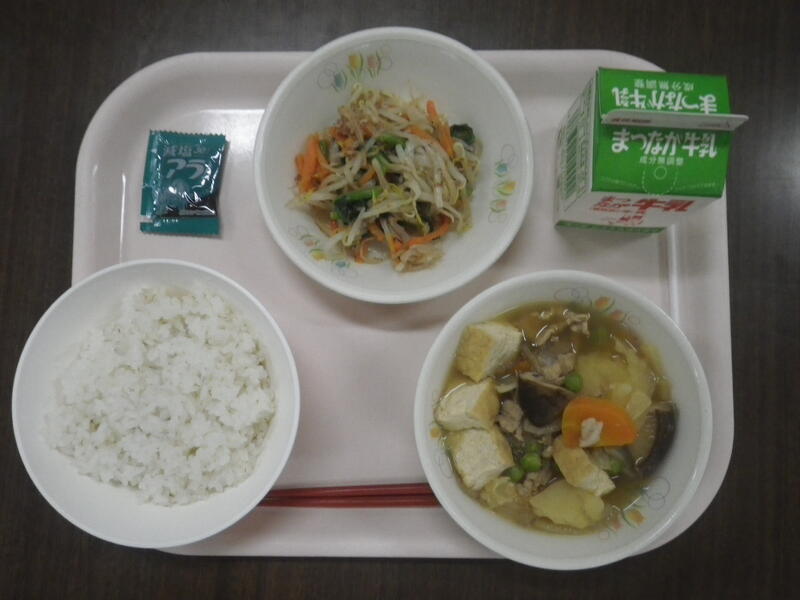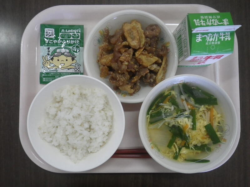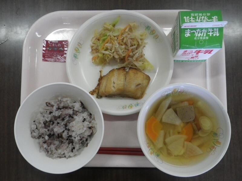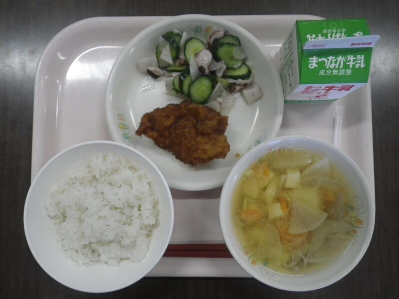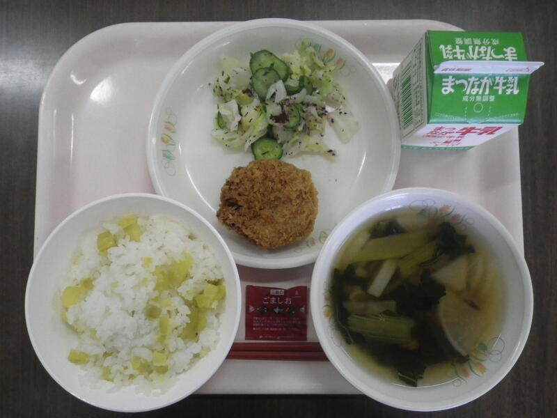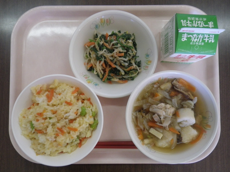11/10 わかめごはん 牛乳 ごぼうサラダ すいとん汁