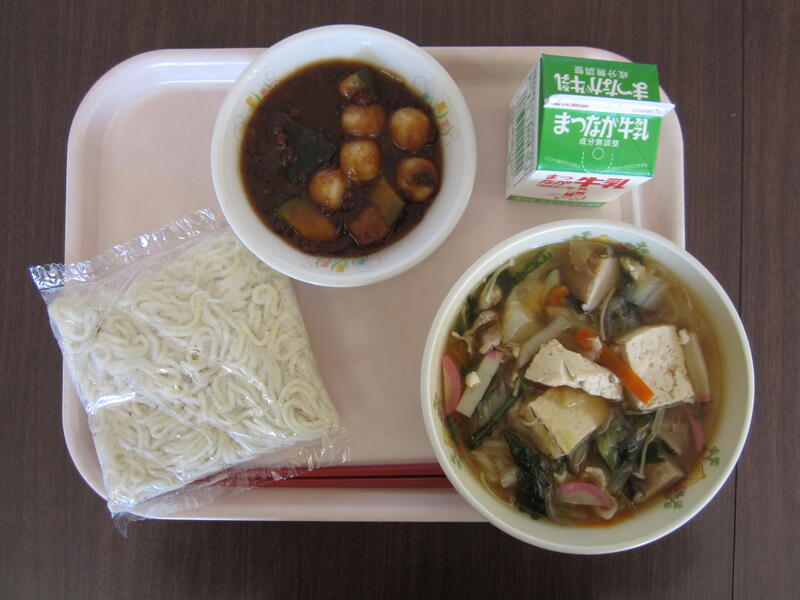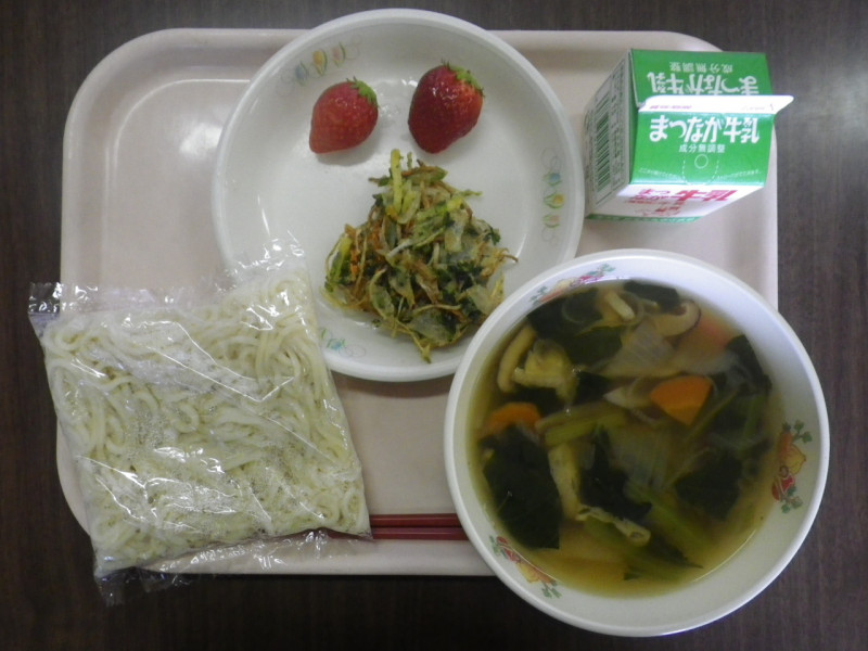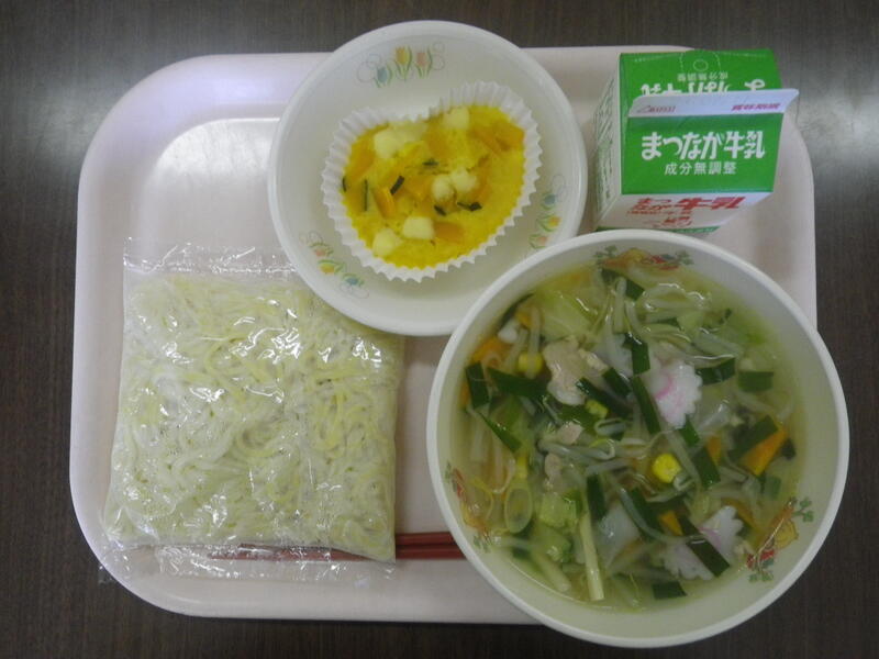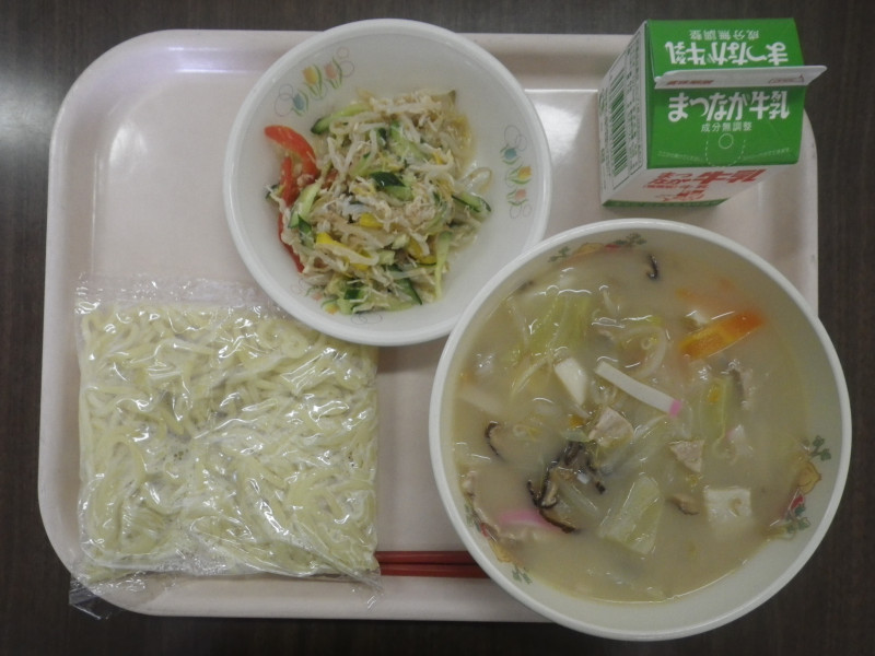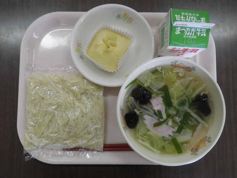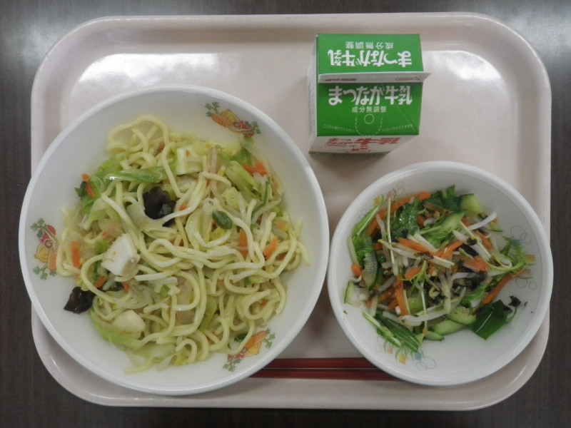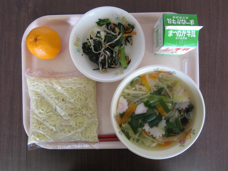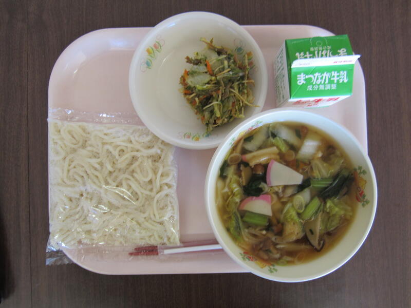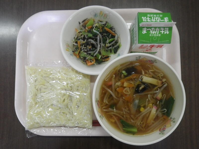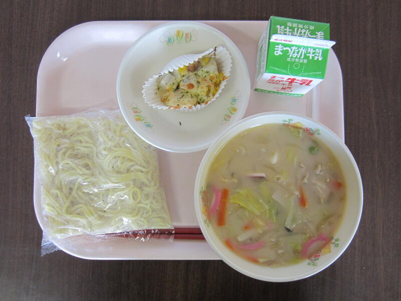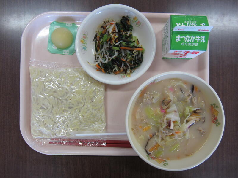 6/15 ちゃんぽんめん 牛乳 こまつなとひじきのナムル 県産一口りんごゼリー